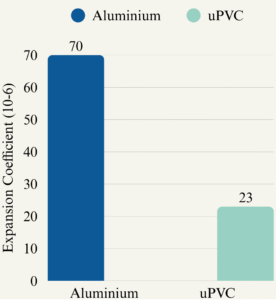 Fig 1: Aluminium windows vs UPVC thermal expansion rates